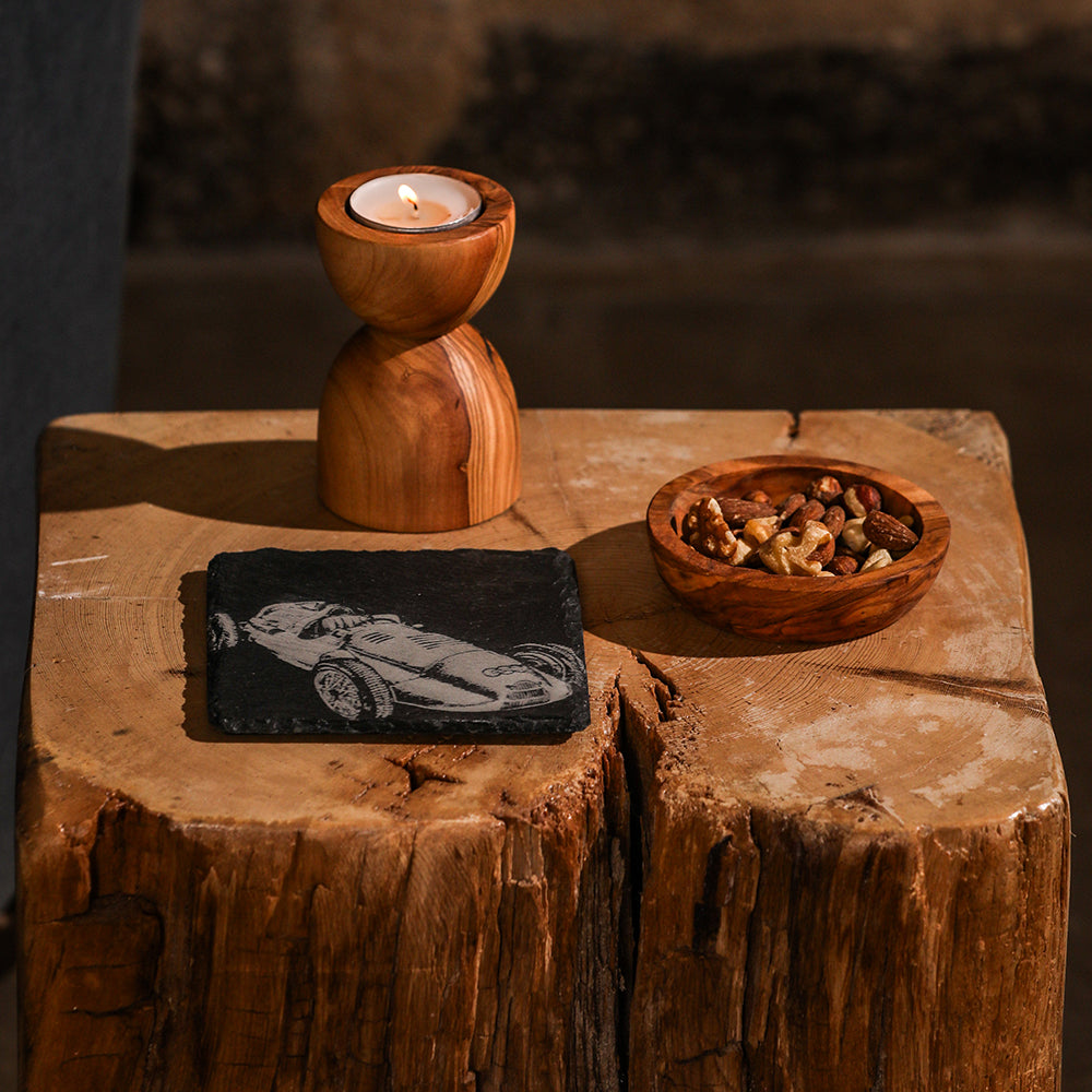 The Vintage Racing Car Single Slate Coaster by Selbrae House brings timeless charm to your tabletop with its classic design and quality slate construction. Carefully crafted for durability, this coaster not only protects your surfaces but also adds a distinctive visual accent to any space where beverages are enjoyed.